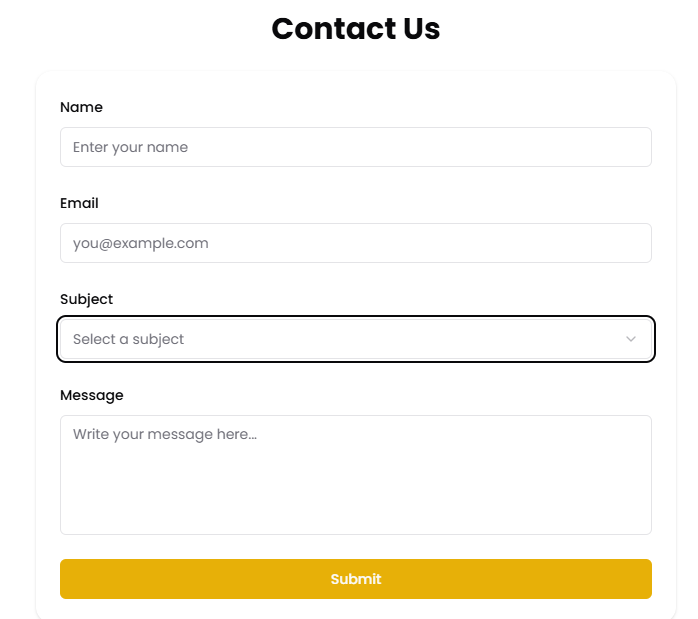 • Subject: Click on the dropdown menu that says “Select a subject” and choose the category that best describes your inquiry. This helps the support team direct your message to the right person quickly (e.g., Booking Help, Payment Issue, General Query).
