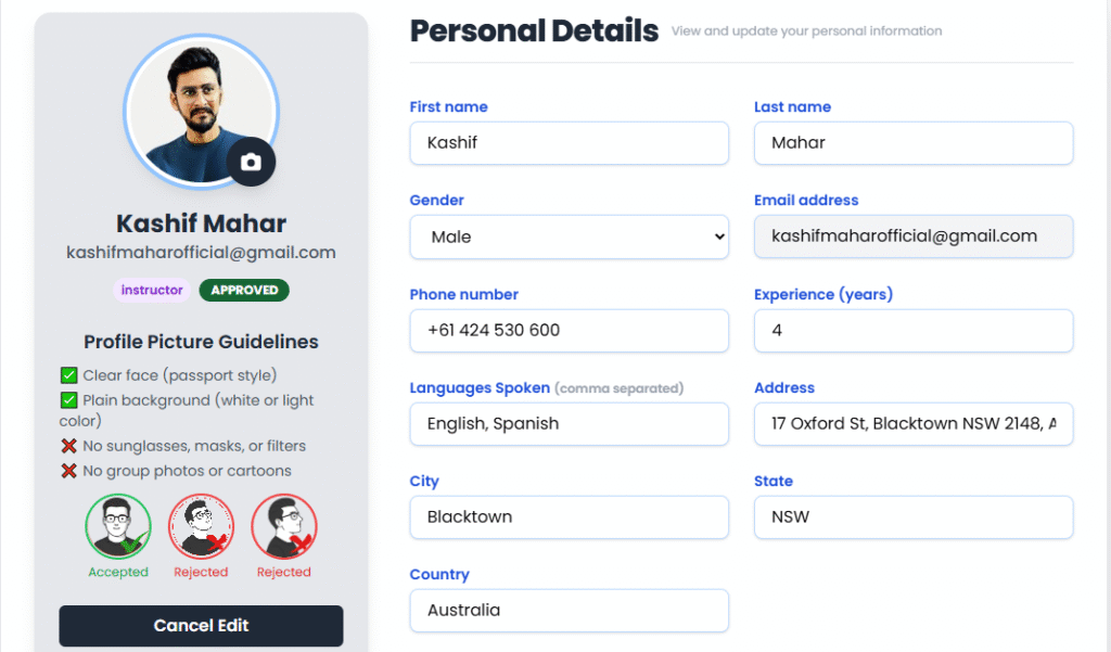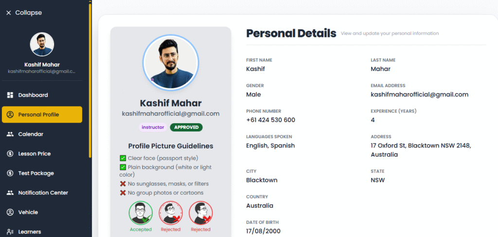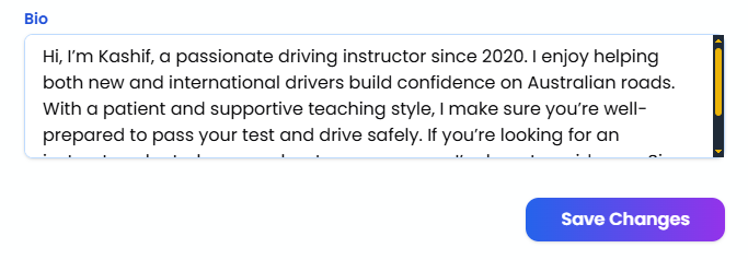- Example: “Hi, I’m Kashif, a passionate driving instructor since 2020. I enjoy helping learners gain confidence on Australian roads.”