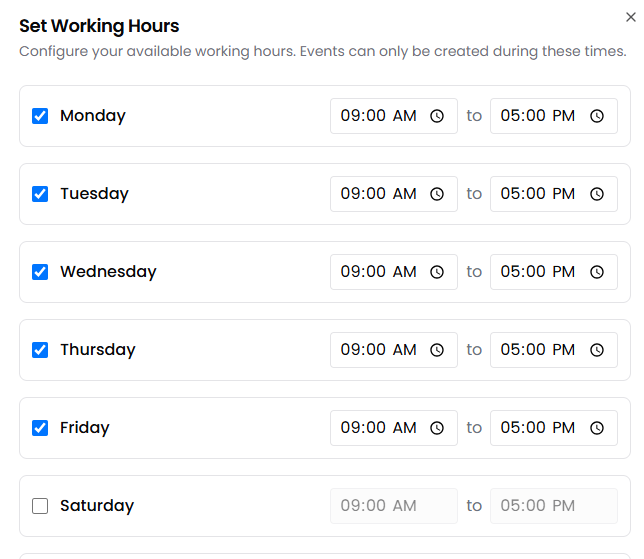 - Set Working Hours