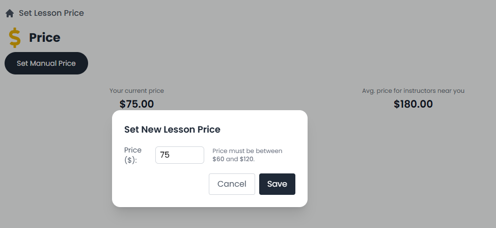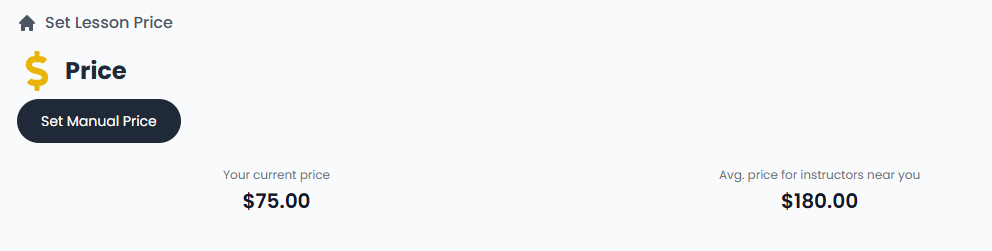 Example:$75.00 - Average Price for Instructors Near You: This is the average price other instructors around you are charging.