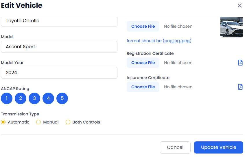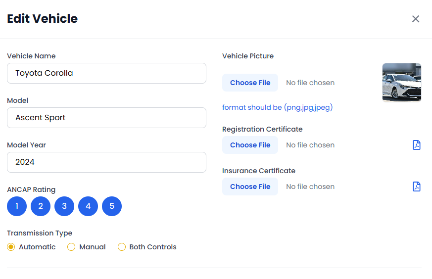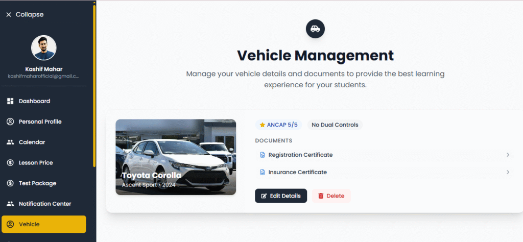Once all fields are completed, save the changes. This helps the admin verify your vehicle and make it available for student bookings.