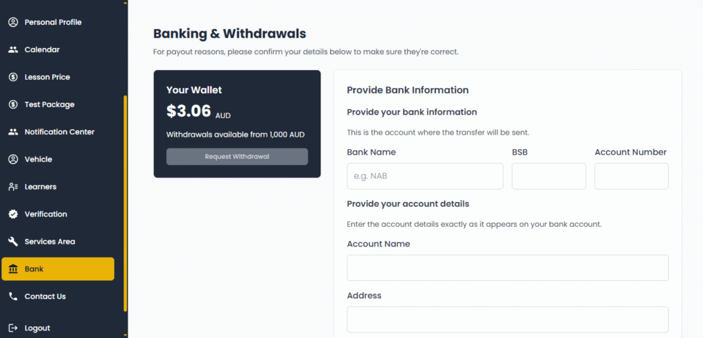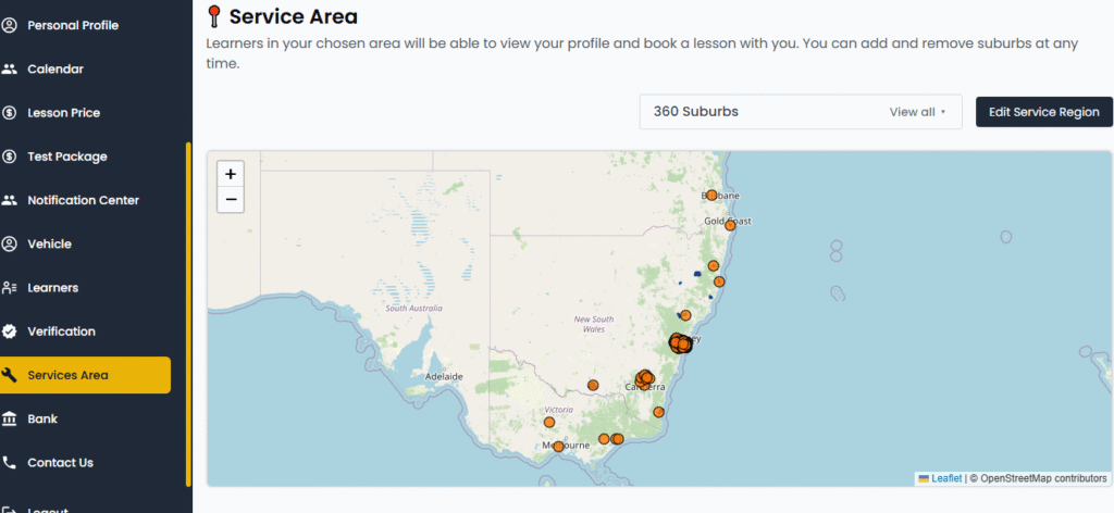 This step is very important because it allows learners in your chosen suburbs to see your profile and book driving lessons with you.