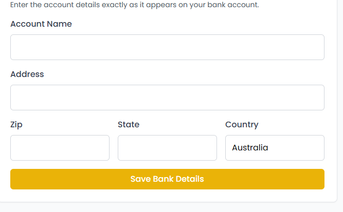 - Once everything is filled in correctly, click the yellow “Save Bank Details” button.