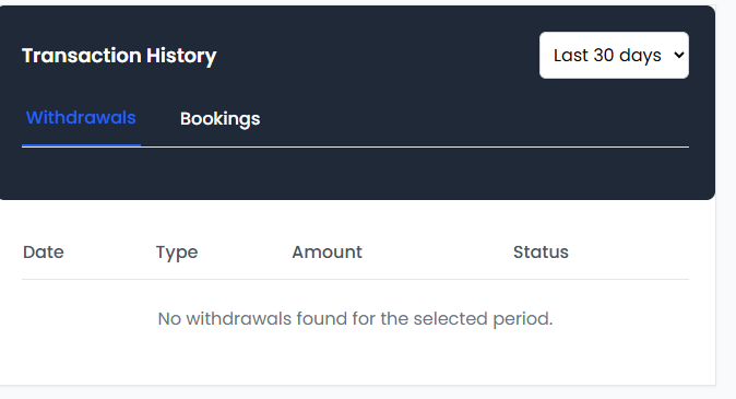 - If no withdrawals have been made yet, it will say “No withdrawals found”.