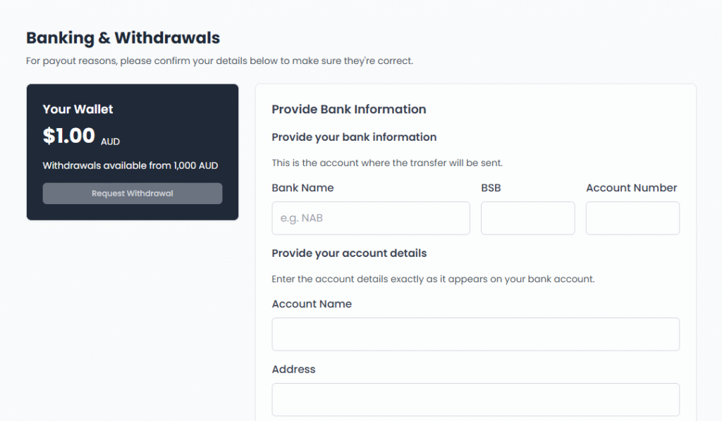 Keeping your banking details up to date ensures smooth and timely payments for all your completed bookings.