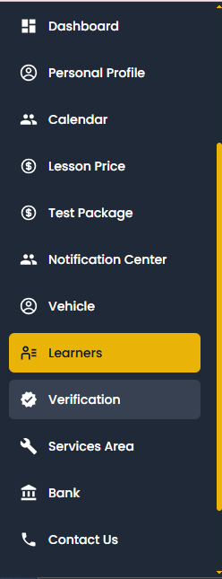 The Learners section allows you to see all the students who have booked lessons or test packages with you. You can check their booking details, lesson history, and contact information for better coordination.