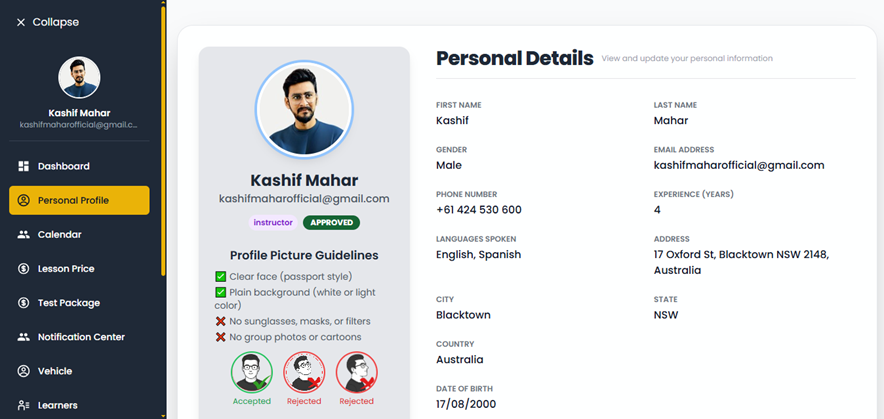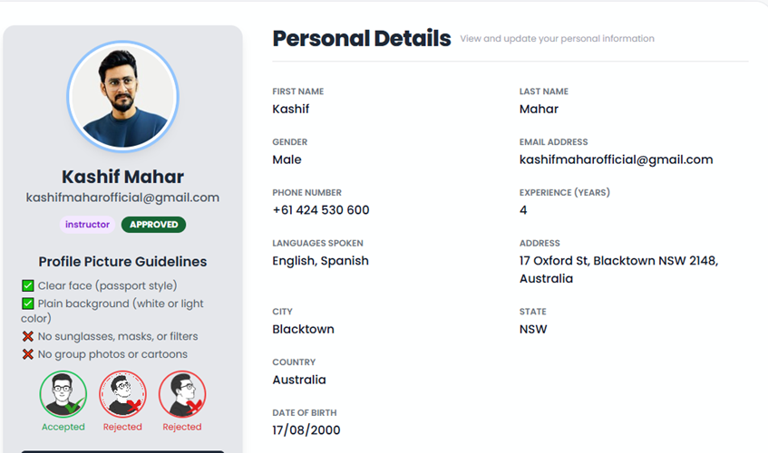 Once your personal profile is complete, it will be visible to learners, helping you attract more bookings and build trust with new students.